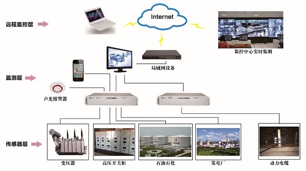 - 溫度傳感器和傳輸光纖全絕緣、耐高壓、防爬電、阻燃